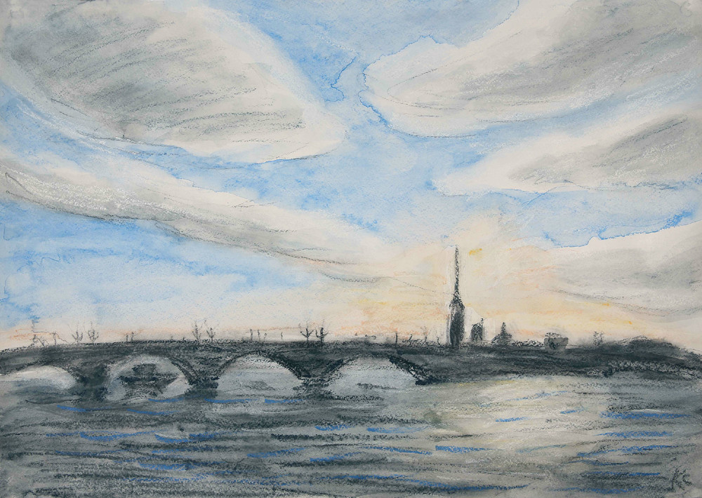 A series of St. Petersburg landscapes, views of the city from different banks of the Neva. Watercolor technique conveys the transparency and graphics of the city.