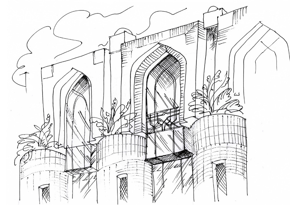Cause to increase in tourist flow in the cities of Samarkand, Bukhara, Khiva, the construction of hotels has become actual. A competition for a hotel in Samarkand for 200 rooms was announced with a mandatory condition to reflect the eastern style of the object. Sketches of the winner of the tender are presented.
