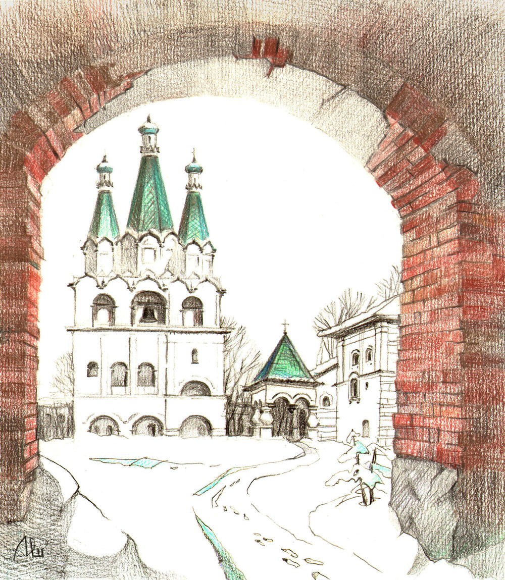 Drawing technique / Техника исполнения : tinted paper, colored pencils / тонированная бумага, цветные карандаши